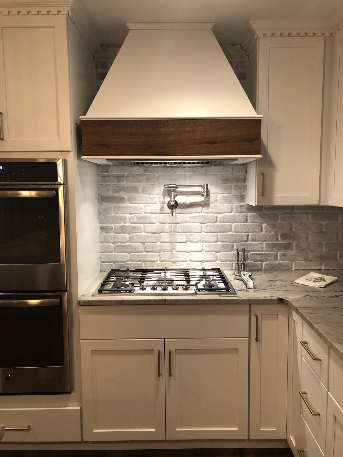 Starmark hood with a custom wood trim, also left over from the hardwood floors. |